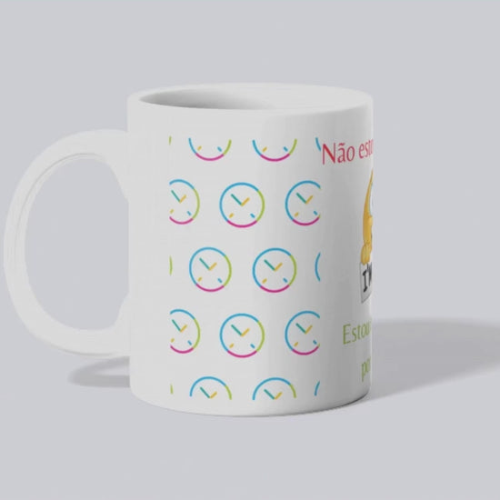 Caneca “Estou em horário português” – Emoji e relógios, 325 ml (M16)